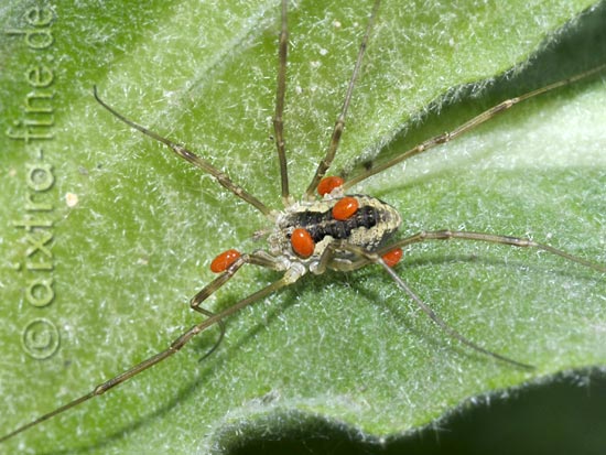 dieser, mir leider unbekannte, weberknecht wird von milben parasitiert.