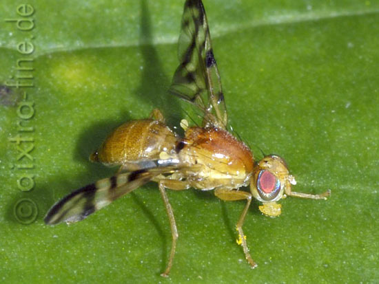 Acidia cognata - ihre körperlänge beträgt 6,5 - 7 mm, die erwachsenen tiere fliegen von mai bis oktober