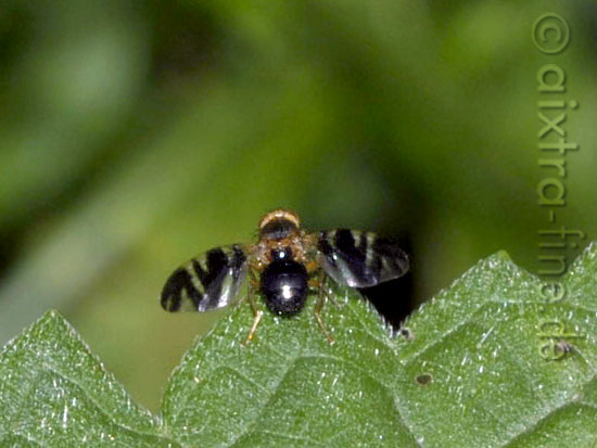 Philophylla caesio - leider extrem fotoscheu, entzog sich mir und meiner kamera sofort. die fliegen werden ca. 4 mm groß. ihre larven minieren in verschiedenen pflanzen und überwintern im boden.