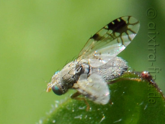 Tephritis cometa ♂ auch sie sind an spezielle wirtspflanzen gebunden, in deren blütenknospen sie ihre eier ablegen. acker-kratzdistel (Cirsium arvense), sumpf-kratzdistel (Cirsium palustre)