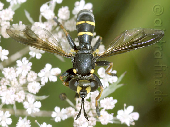 dunkle wespendickkopffliege - conops flavipes ist "unsere" häufigste conops-art. anzutreffen in offenem gelände