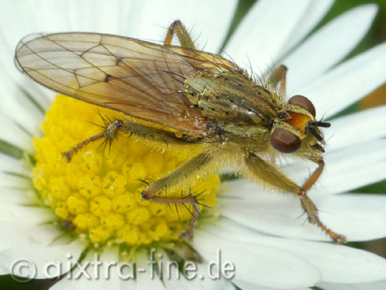 gelbe dungfliege - scatophaga stercoraria - weibchen