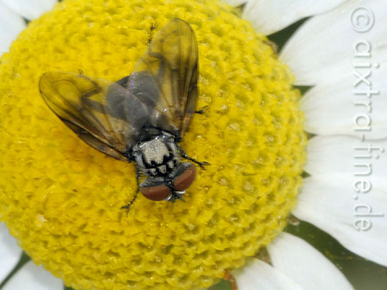 goldschild-wanzenfliege - Phasia obesa - erreicht eine körperlänge von 4 - 6 mm. ihre flugzeit: juni - september. wiesen und waldränder sind ihr lebensraum. leider habe ich nur dieses eine foto von ihr, sie ist wohl etwas kamerascheu ;0)