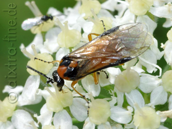 Athalia rosae - rübsenblattwespe die 6 - 8 mm großen blattwespen sind von mai - oktober auf feldern, in gärten und an wegrändern zu finden.