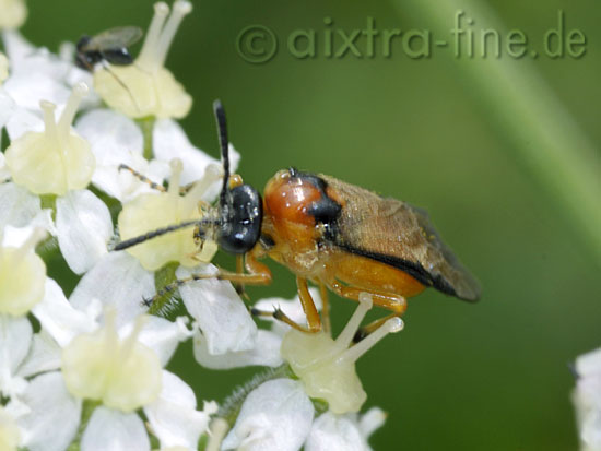 Athalia rosae - rübsenblattwespe wird auch kohlrübenblattwespe genannt ihre larven sind gefürchtete pflanzenschädlinge in der landwirtschaft. sie fressen die blätter von kreuzblütlern, dazu gehören alle kohlsorten.