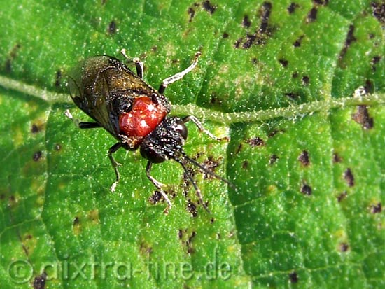 Eriocampa ovata - erlenblattwespe die larven werden ca. 20 mm lang und sind mit wachsartigen zotteln bedeckt. sie fressen die blätter von grau- und schwarzerle.