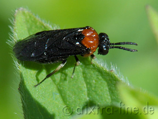 Eutomostethus ephippium - sattelblattwespe diese blattwespe wird ca. 4 - 5 mm groß. das erwachsene tier ernährt sich von nektar und pollen.