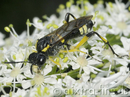 Macrophya montana ♀ - bergblattwespe die imagos ernähren sich neben nektar und pollen (z.b. des wiesen-bärenklau, (Heracleum sphondylium)) auch von kleineren insekten.