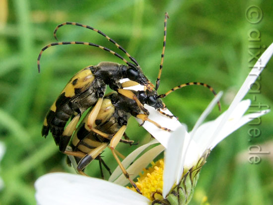 Leptura maculata - gefleckter schmalbock - kopula ist von anderen leptura arten gut durch seine "geringelten" fühler zu unterscheiden