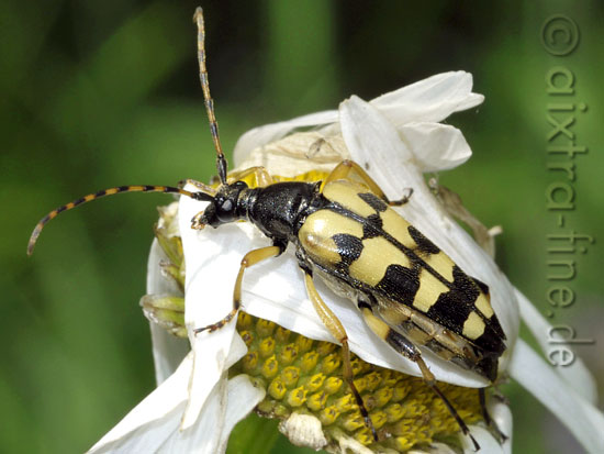 Leptura maculata (Strangalia maculata) - gefleckter schmalbock wird zwischen 14 und 20 mm groß und fliegt von mai bis august