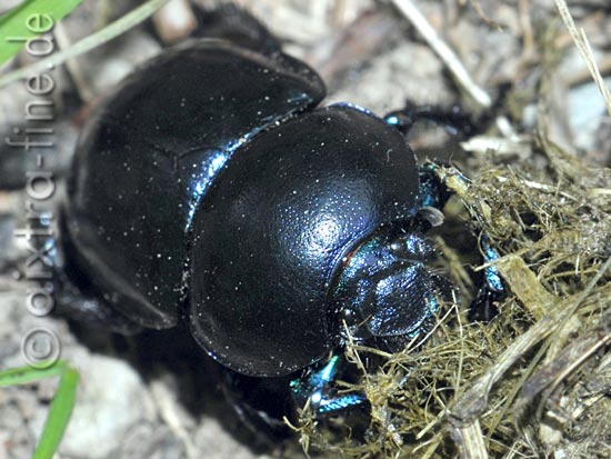 Trypocopris vernalis (Geotrupes vernalis) - frühlingsmistkäfer lebt vorzugsweise in wäldern, aber auch auf weiden. er ernährt sich von kot und ist hier wohl bei seiner "lieblingsbeschäftigung" ;-)