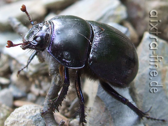 mistkäfer, wie der name schon sagt ist kot seine nahrung, aber auch aas, baumsäfte und pilze.