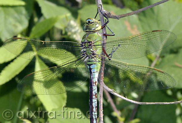 Anax imperator - große königslibelle ♀ wie ihr name schon sagt eine libelle von stattlicher größe. ihre flügelspannweite beträgt 90 bis 105mm und sie hat eine körperlänge von 66 bis 84mm.