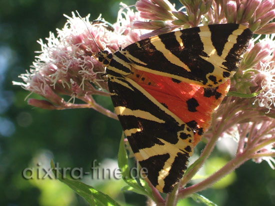Euplagia quadripunctaria - russischer bär, wird auch spanische flagge und gestreifter schönbär genannt die falter fliegen in einer generation von juli bis september