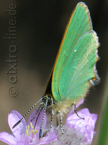 grüner zipfelfalter - Callophrys rubi er wird auch als "brombeerzipfelfalter" bezeichnet. jedoch führt dieser name in die irre, da man brombeeren bislang nicht als futterpflanze der raupen nachweisen konnte. |