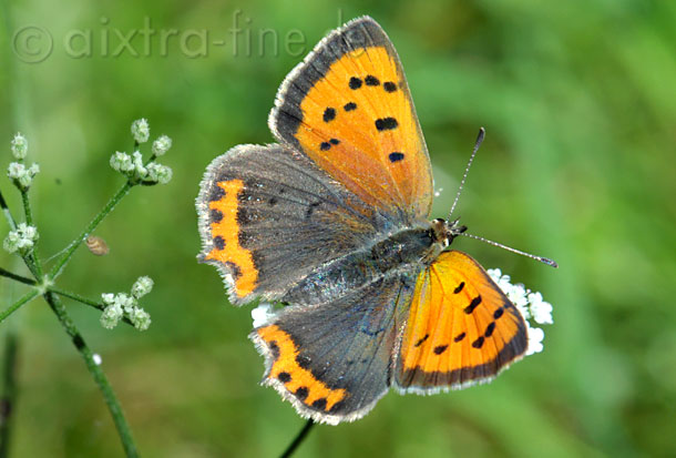 kleiner feuerfalter - Lycaena phlaeas diese hübschen und leuchtenden falter fliegen in mehreren generationen von mai bis in den oktober hinein.