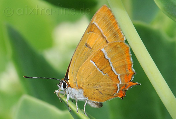 nierenfleck-zipfelfalter - Thecla betulae die falter werden für einen bläuling ziemlich groß und haben eine flügelspannweite von 32 bis 37 mm. wobei die weibchen etwas größer sind als die männchen.