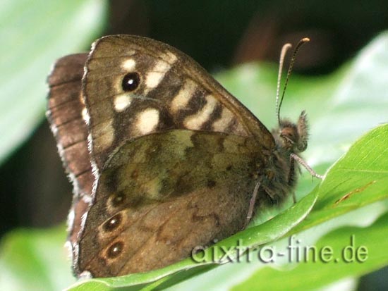 Pararge aegeria - waldbrettspiel die männchen zeigen ein deutliches revierverhalten, sie sitzen an exponierten stellen, von wo aus sie ihr revier überblicken. rivalen versuchen sie zu vertreiben.