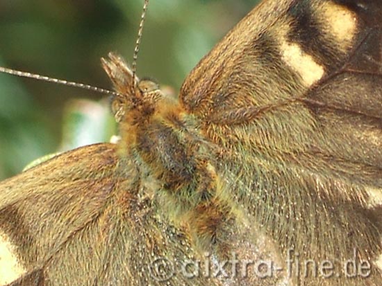 die raupen des schmetterlings sind gelb-grün gefärbt und haben 2 weiße "zipfel" an ihrem