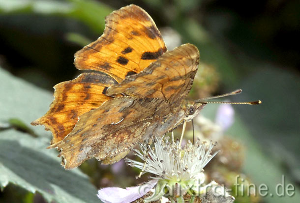 Polygonia c-album (Nymphalis c-album) - c-falter die falter findet man meist in waldnähe, aber auch in parks und gärten. nur völlig offenes gelände vermeiden sie.