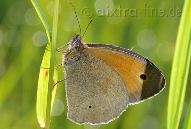 Maniola jurtina - großes ochsenauge noch gibt es diesen schmetterling recht häufig, aber er ist auf dem rückzug. die intensiv genutzten, gülle gedüngten fettwiesen bieten ihm keinen lebensraum.