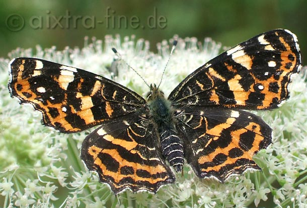 Araschnia levana f. porima - landkärtchen, netzfalter / zwischenform die färbung des schmetterlings wird wahrscheinlich durch die, während des puppenstadiums vorherrschende temperatur verursacht.