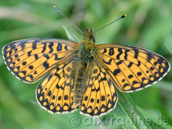 Boloria sp. - perlmuttfalter vermutlich handelt es sich auch hier um Boloria selene, den braunfleckigen perlmuttfalter, aber leider wurde mir ein "erhellender" blick auf seine flügelunterseite verwehrt.