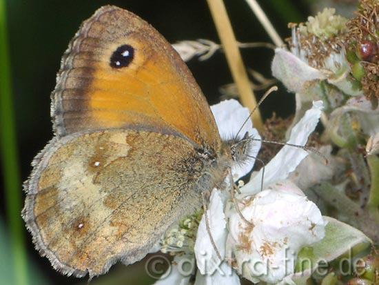 Pyronia tithonus (früher Maniola tithonus) - rotbraunes ochsenauge der schmetterling mit einer spannweite von 35 bis 45 mm fliegt in den monaten juli/august, manchmal auch bis anfang september.