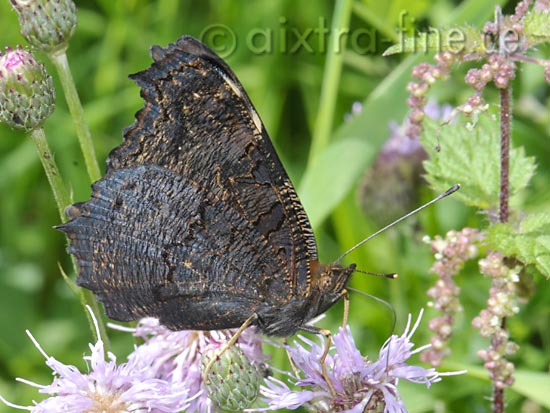 Inachis io - tagpfauenauge die schmetterlinge ernähren sich vom nektar unterschiedlicher blüten und saugen im spätsommer auch gerne an überreifem obst.
