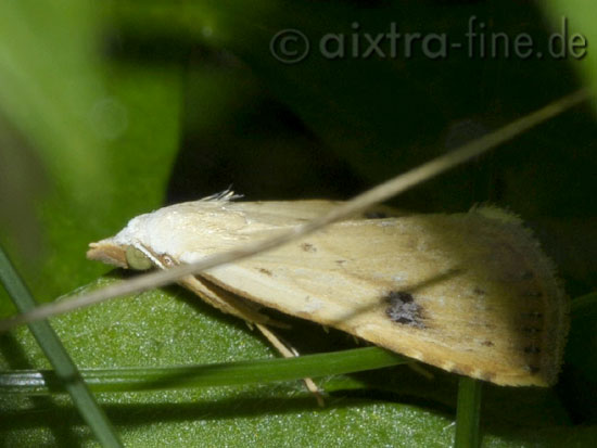 Rivula sericealis - seideneulchen der kleine falter, ca. 20 mm flügelspannweite, fliegt in der zeit von von juni bis september. aktiv ist er meist in der ersten nachthälfte, tagsüber versteckt er sich.