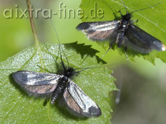 grüner langfühler - adela reaumurella syn. adela viridella - tanzen oftmals in großen schwärem. die männchen erkennt man an ihren sehr langen hellen fühlern, die fühler der weibchen sind deutlich kürzer. flügelspannweite: 14 - 18 mm