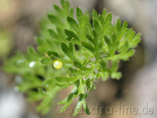 schwalbenschwanz - Papilio machaon gerade abgelegtes ei auf wilder möhre (Daucus carota). die eier werden einzeln an verschiedenen doldengewächsen wie wilde möhre, fenchel, bärwurz, petersilie und kleiner pimpernelle abgelegt.