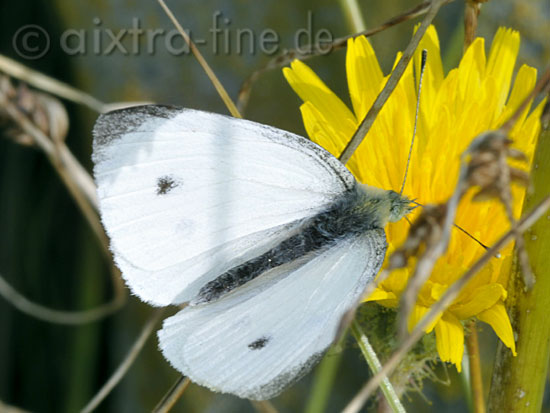 Pieris rapae - kleiner kohlweißling der falter ist dem großen kohlweißling sehr ähnlich, nur der schwarze fleck auf der vorderen flügelspitze ist bei ihm kleiner. er erreicht eine flügelspannweite von 40 - 50 mm.