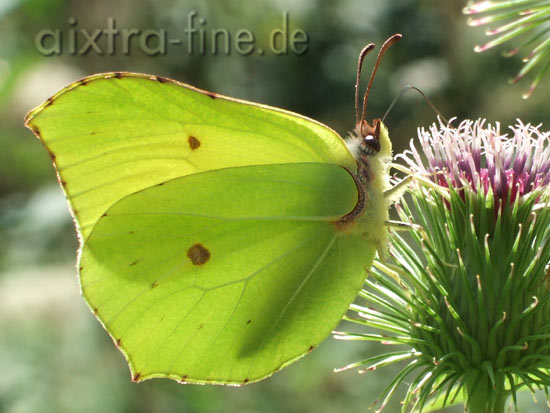 zitronenfalter - Gonepteryx rhamni die männchen haben intensiv zitronengelb gefärbte flügel, die der weibchen sind blass grünlich-weiß. ihre flügelspannweite erreicht 50 bis 55 mm.