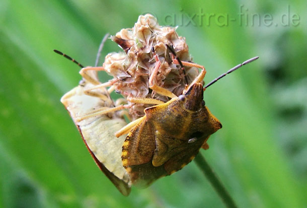 Carpocoris cf. purpureipennis - purpur-baumwanze ab mai werden die eier abgelegt. die larven findet man dann zwischen juni und august. die erwachsenen tiere überwintern.