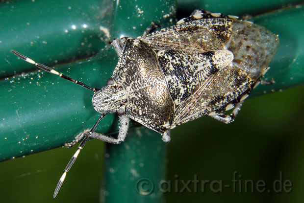 die graue gartenwanze (auch graue feldwanze genannt) ist mit 13,5 bis 16 mm eine recht große baumwanzenart. sie macht ihrem namen alle ehre, da ich sie bislang nur in unserem garten gesehen haben.