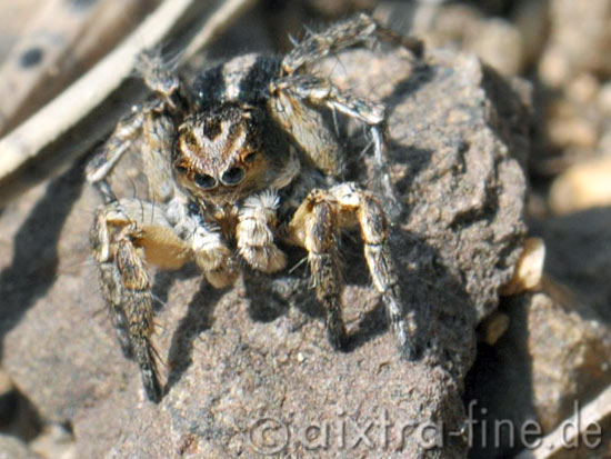 Aelurillus v-insignitus - männchen - namengebend ist das v auf der stirn die erwachsenen geschlechtsreifen tiere findet man von mai bis juli.