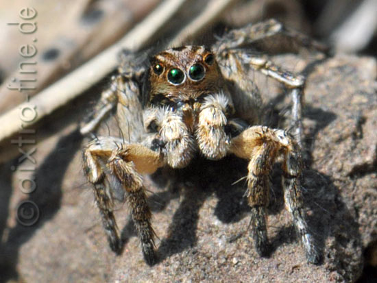 Aelurillus v-insignitus - männchen auffallend sind seine schönen großen grünen augen und die zimtfarbene behaarung, die bei dem weibchen nicht vorhanden ist.