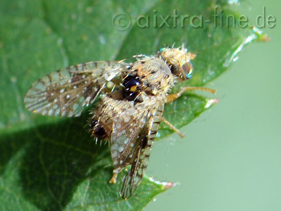 eine sehr kleine fliege ( ca. 3 - 4 mm ) mit ausgesprochen hübscher zeichnung