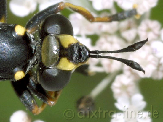 dunkle wespendickkopffliege - conops flavipes - portrait ist "unsere" häufigste conops-art. anzutreffen in offenem gelände
