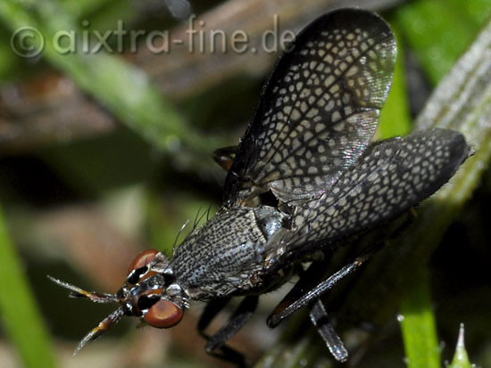 Coremacera marginata - melierte schneckenfliege diese "schnecken-killer" verbrauchen als larven 2 bis 3 schnecken um ihre entwicklung abzuschließen.