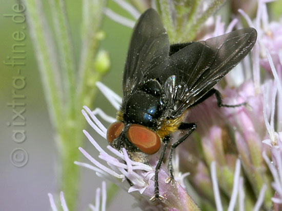 wanzenfliege - Phasia hemiptera - weibchen erreicht eine körperlänge von 8 - 12 mm. fliegt in 2 generationen von mitte april bis mitte juni und dann wieder von mitte juli bis ende september.
