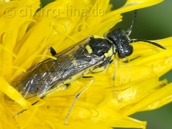 diese gelb-schwarze blattwespe erreicht eine körperlänge von 8 - 11 mm.