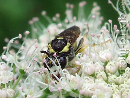 Tenthredo cf. notha wie viele andere blattwespen auch ernährt sich diese von pollen und nektar diverser blüten, aber auch von kleineren insekten.
