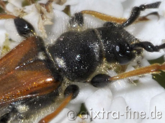 Stenopterus rufus - braunrötlicher spitzdeckenbock - portrait von mai bis august kann man die käfer auf blüten finden. sie werden 8 bis 16 mm groß.