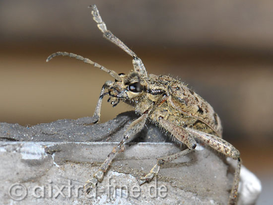 Rhagium inquisitor - kleiner zangenbock der käfer wird 10 bis 21 mm lang und seine oberfläche ist dicht behaart.