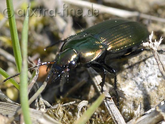 Poecilus cupreus - kupferfarbener listkäfer, kupferfarbener buntgrabläufer hauptsächlich ernährt er sich räuberisch von insekten, aber manchmal mag er es auch vegetarisch.