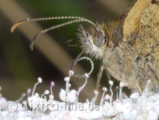 seine raupen sind braun bis grünlich gefärbt. sie leben von verschiedenen gräsern, besonders lieben