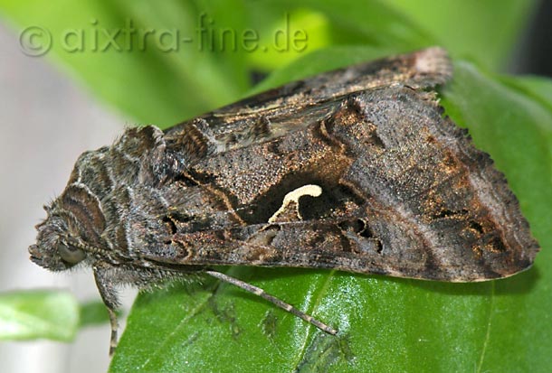 Autographa gamma - gammaeule nachdem erst die raupen meinen basilikum demiziert haben, sitzt jetzt ein wunderschöner falter im küchenkraut.