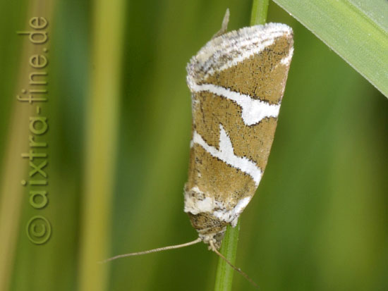 Deltote bankiana - silberstricheulchen, silbereulchen wird auch silbergestreiftes grasmotteneulchen genannt und erreicht eine flügelspannweite von 24 bis 28 mm